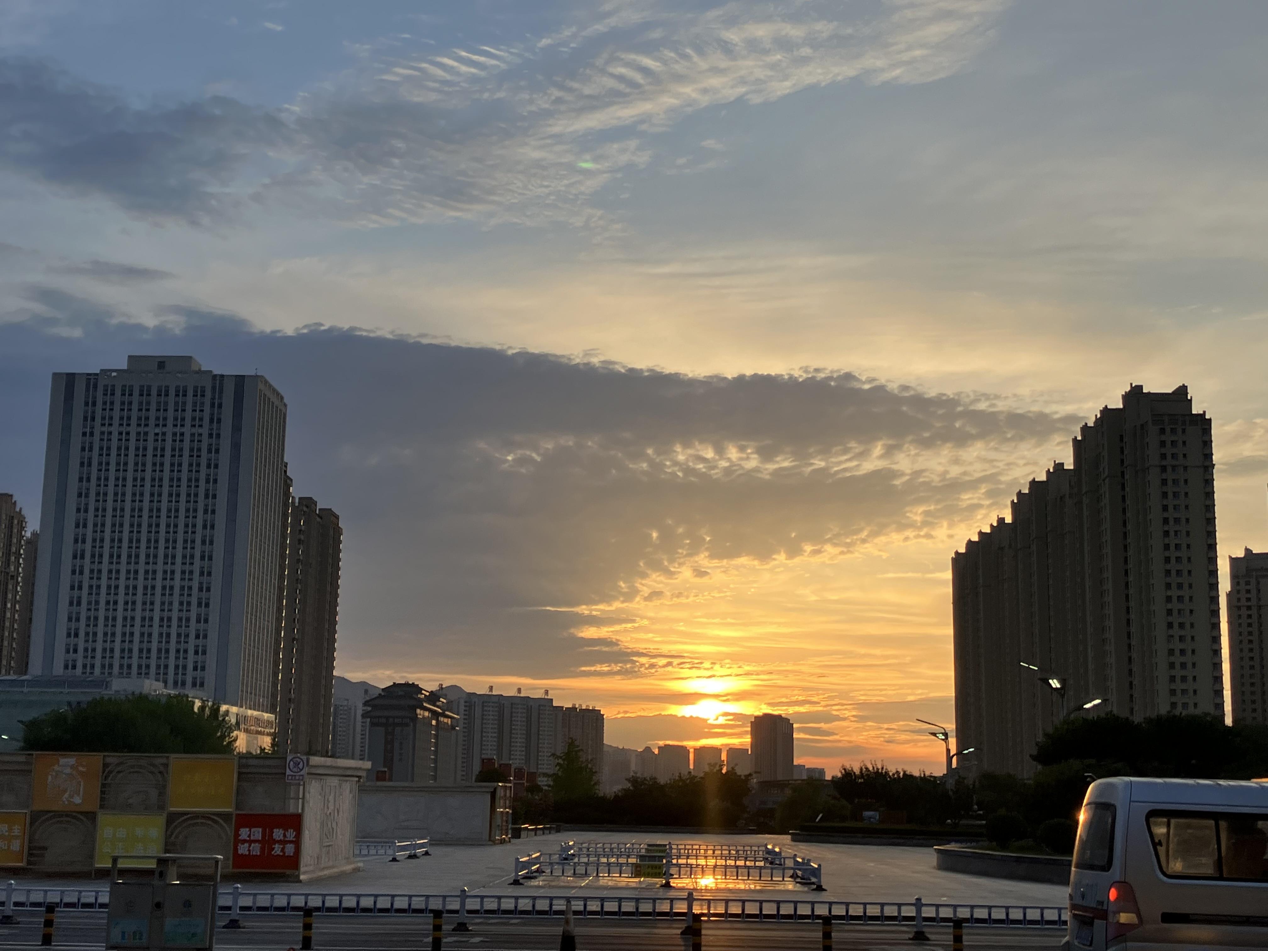 泰安站門口,六點車站才會開門。昨夜剛剛下過雨,我坐在冰涼的石墩上。 此刻抬頭,便是初陽。